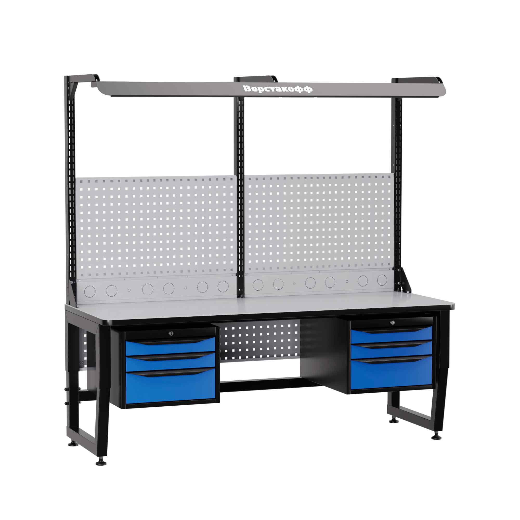 Для наилучшей освещенности при работе с мелкими электронными компонентами рабочее место комплектуется блоком освещения. В его составе - специальный промышленный светильник с необходимой цветовой температурой и световым потоком, обеспечивающим оптимальные условия работы. Блок освещения располагается над рабочей поверхностью на регулируемых (по высоте и по вылету) кронштейнах<br />