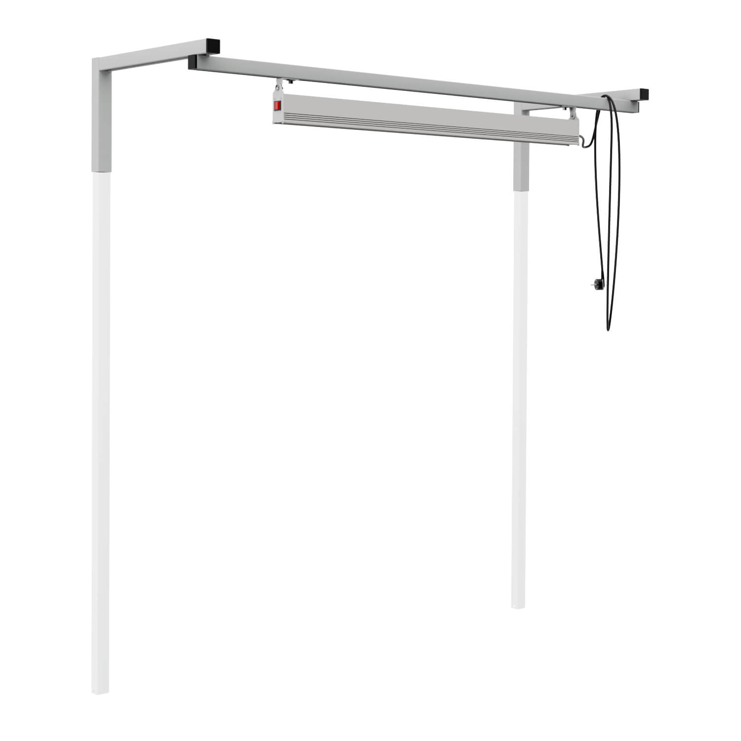 Комплект освещения светодиодный фиксируется на задние стойки на кронштейнах Г-образной формы, регулируется по высоте от уровня столешницы от 400 до 1400 мм. С помощью держателей регулируется направления потока света.
