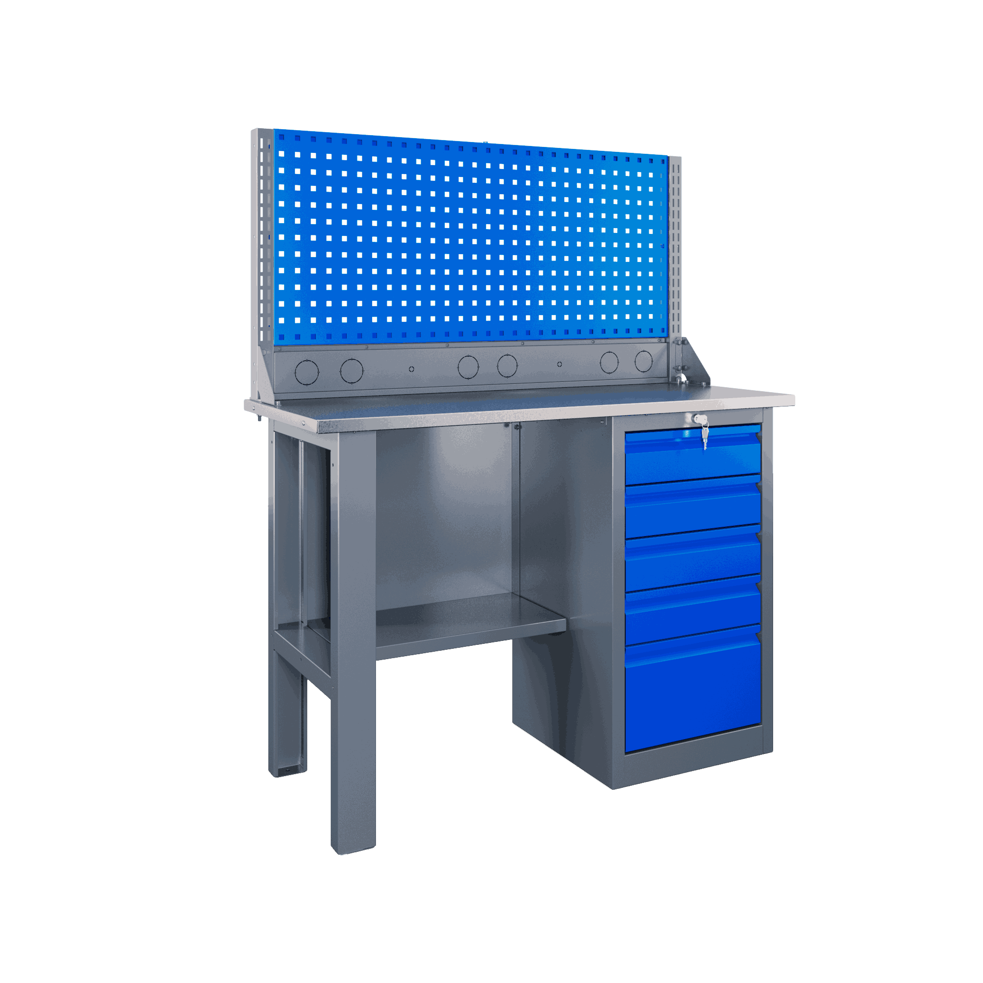 Самые компактные верстаки с глубиной столешницы 500 мм. Благодаря небольшой глубине, такие верстаки легко размещаются в ограниченных пространствах, например, в гаражах, мастерских и тд. Несмотря на компактные размеры, верстаки могут быть оснащены полками, ящиками и держателями для инструментов, что помогает поддерживать порядок и быстро находить нужные предметы.