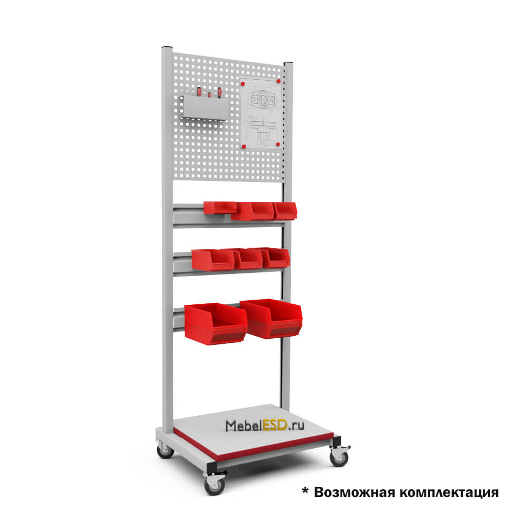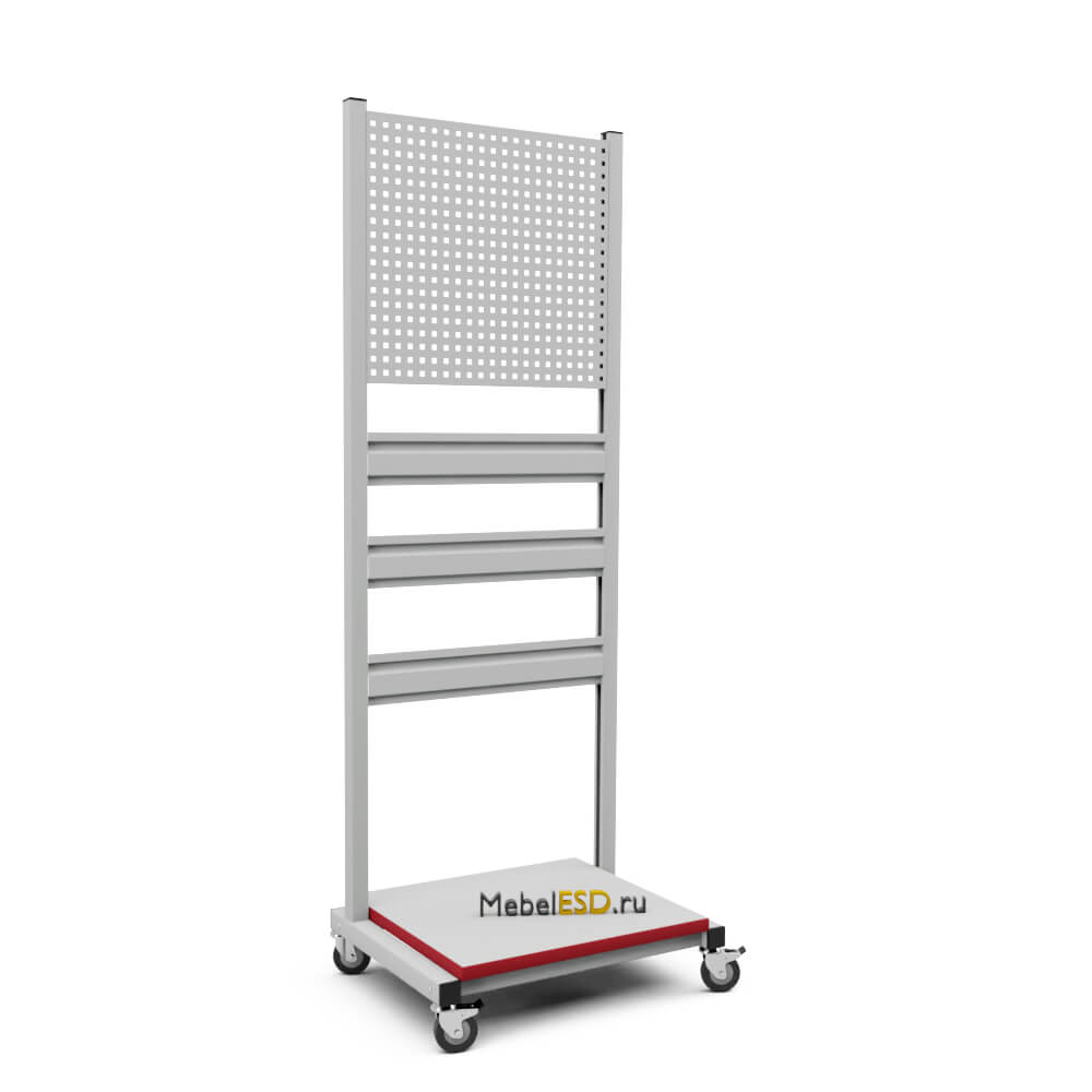 Стойка подкатная универсальная СПК используется для хранения и перемещения инструментов, материалов и комплектующих в рабочем пространстве. В стандартной комплектации стойка поставляется в комплекте с панелью перфорированной ППМ и планкой для лотков ПЛМ (3 шт.). Возможно зеркальное (двухстороннее) размещение планок для лотков и перфопанелей. Регулировка высоты дополнительного оборудования осуществляется по боковым стойкам. Конструкция стойки позволяет оснастить ее дополнительным оборудованием — полками, перфопанелями и планками для лотков. Стойка мобильная имеет металлический каркас окрашенный порошковой краской.