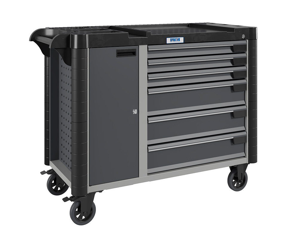 • Топ (пластик черного цвета) оснащён ложементами под инструменты для организации, хранения и удобства использования во время выполнения работ. Нагрузка на ТОП – 40 кг